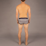 The Wayne Brief is a well designed brief and fits comfortably. The sizing and fit is spot on, the material is comfortable, and the design patters are fantastic. I now have 4 pair with the latest to my collection being the Rugby Navy and White Stripe. I look forward to purchasing more in the future!